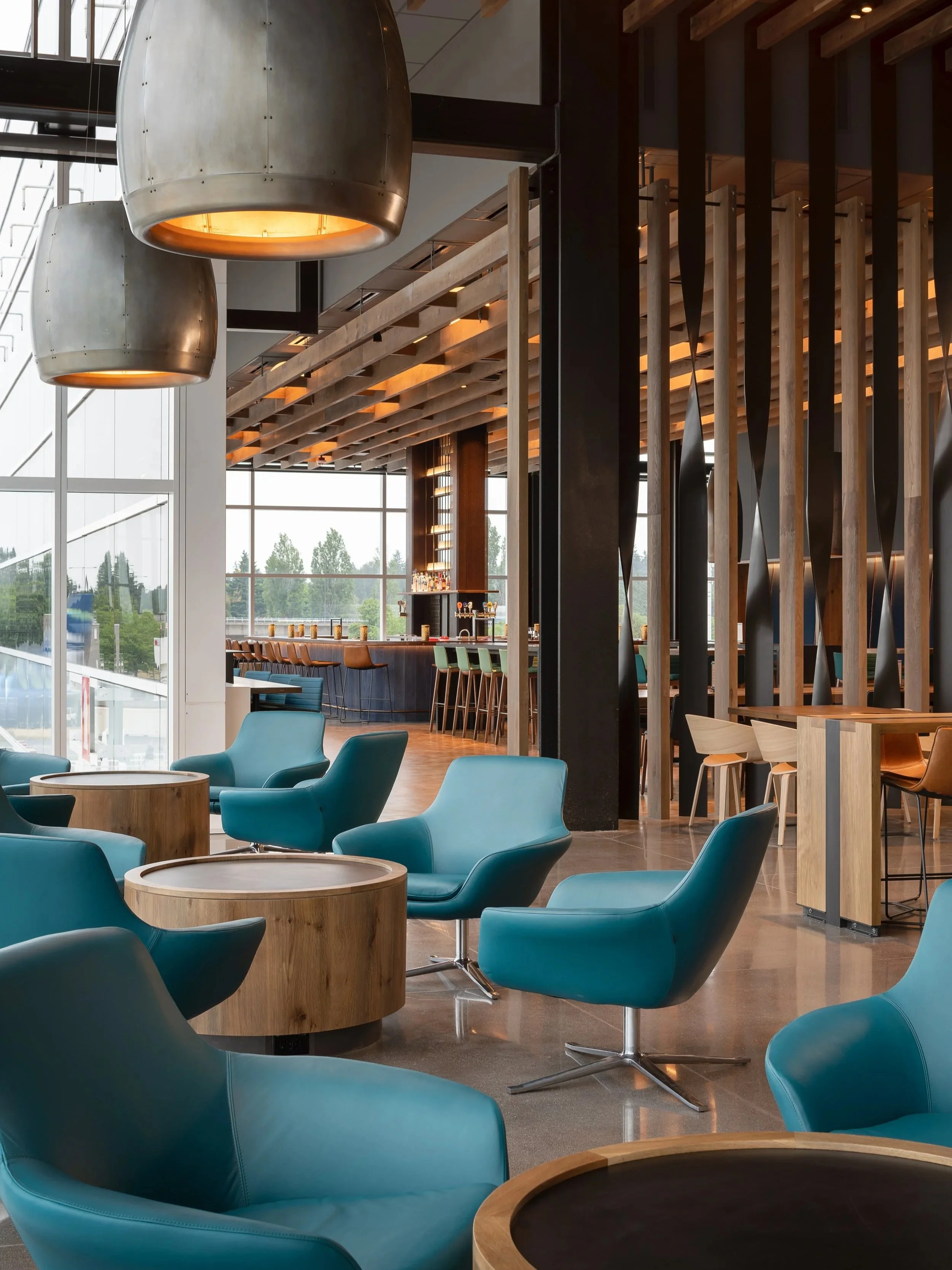 This project reimagines the airport lounge as a warm, inclusive retreat rooted in the landscapes and craft of the Pacific Northwest. Layered zones for dining, work, and relaxation create a welcoming home-away-from-home within the airport.